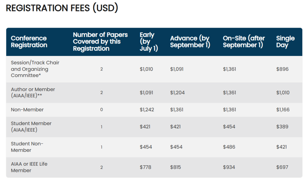 Student Registration provides all the benefits of registration but covers only one paper submission. The cost for extra paper submissions is $50 per paper. Student Registration Rates are for full-time students only.